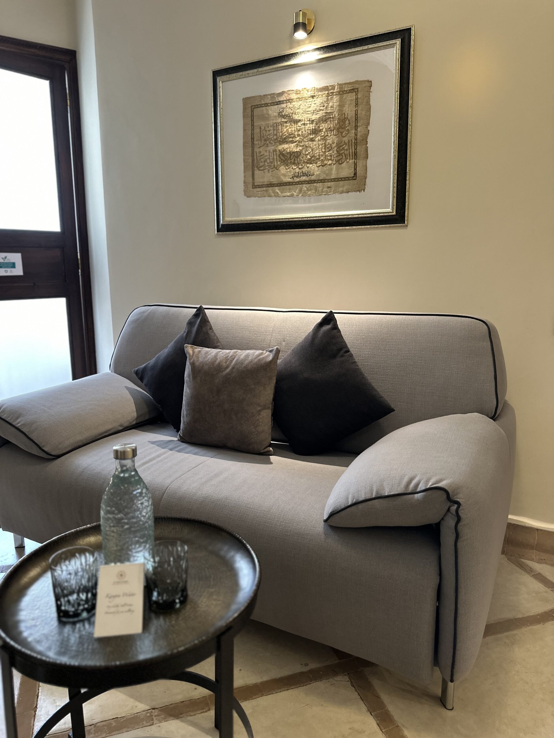 Unsere Suite El Bacha ehrt dieses Vermächtnis großartiger Gastfreundschaft und familiärer Zusammenkunft. Als unsere größte und prestigeträchtigste Unterkunft bietet diese 63 m² große Familien-Executive-Suite den Raum und Luxus, der ihrem noblen Namensgeber würdig ist. Mit zwei Schlafzimmern und Platz für bis zu fünf Gäste lässt sie die Tradition des Paschas aufleben, Menschen in Komfort und Stil zusammenzubringen. Die großzügigen Proportionen und elegante Einrichtung der Suite spiegeln El Glaouis Verständnis wider, dass wahrer Luxus bedeutet, Raum zum Leben, Unterhalten und Schaffen von Erinnerungen mit den wichtigsten Menschen zu haben.