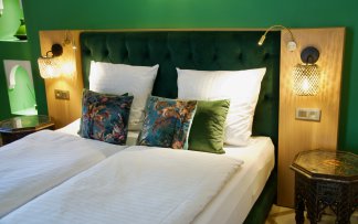 Our Suite Jardin Secret captures this same spirit of tranquil luxury and hidden beauty. Like its namesake, this honeymoon suite offers an intimate escape where couples can create their own secret paradise. The warm glow of the fireplace echoes the garden's sunset ambiance, while the carefully curated décor reflects the harmonious blend of nature and architecture that makes the original Jardin Secret so magical.
